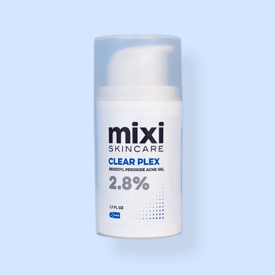 Mixi Skincare I Clear Plex 2.8% is an overnight benzoyl peroxide cream to treat stubborn inflamed acne, unclog pores, fight acne causing bacteria and help clear cystic acne.